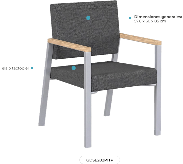 Recibe a tus visitantes con una presencia cálida y arquitectónica: asiento amplio y respaldo de acero de gran soporte, acolchados en tela o vinil Grado A. Su formato de 58 × 60 × 85 cm equilibra comodidad y postura con 45 cm de altura al asiento y descansabrazos fijos en madera de haya que se sienten naturales al tacto. Bajo su estética serena, la base de triplay de pino y la lámina de acero aportan resistencia confiable, soportando hasta 115 kg sin esfuerzo. Patas metálicas durables y proporciones limpias brindan orden, confianza y una primera impresión discretamente sofisticada.