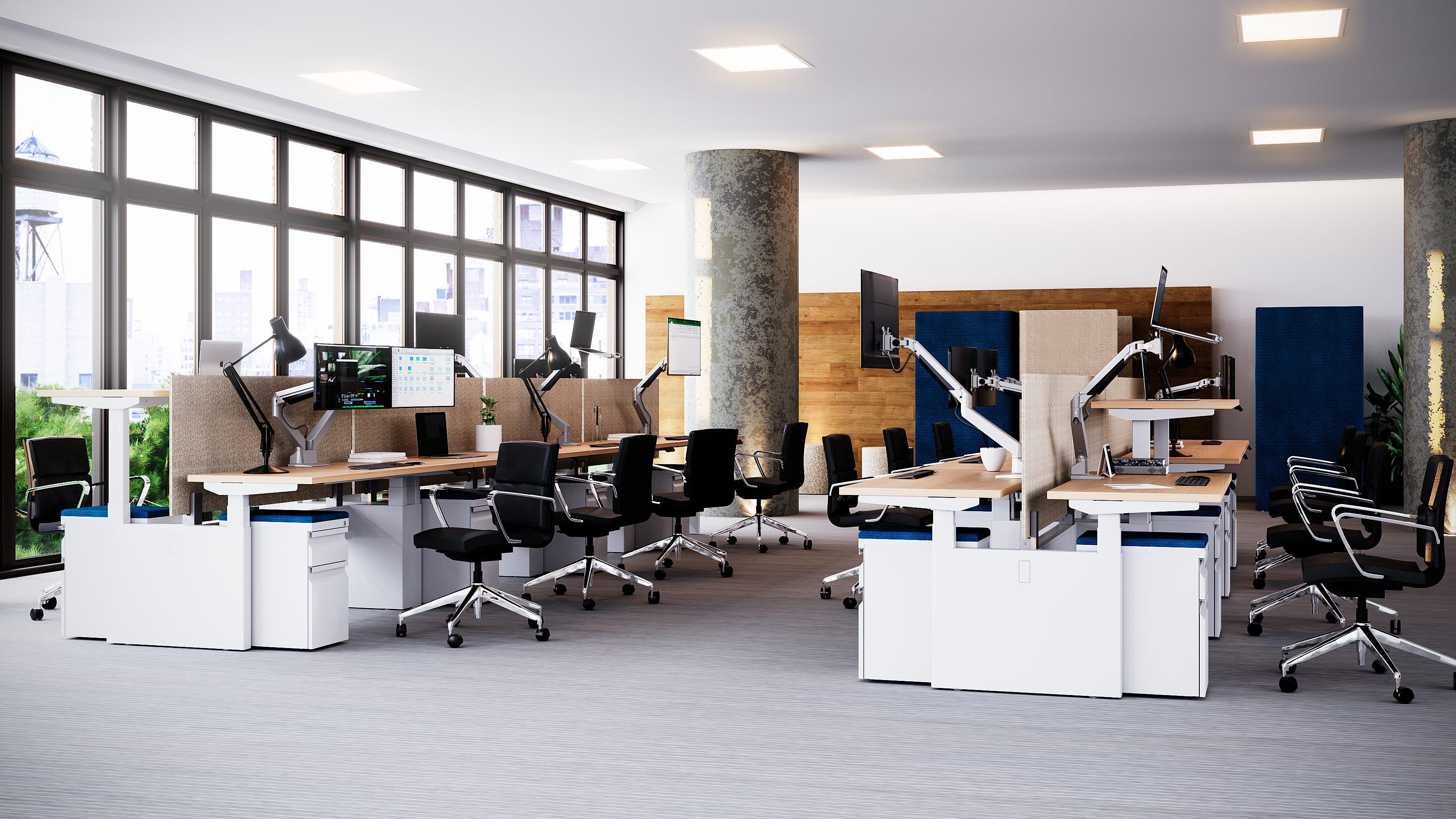 El portamonitor de 2 brazos es la herramienta perfecta para todo tipo de necesidades del trabajo. Crea una configuración con dos monitores. El flexible brazo y soporte para monitor te permite ex tender, inclinar y girar el monitor y la laptop con un amplio rango de movimientos a lo largo de varios ejes, con ajustes de la altura, para llevar a cabo sin esfuerzo los cambios de posición.