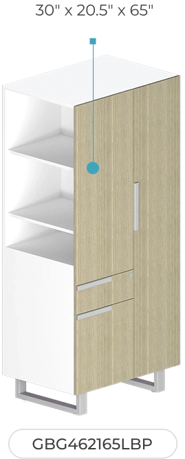 • Floor-standing storage unit 30" × 24" × 71", available in right-hand and left-hand versions. • Includes aluminum-finish metal handle. • Includes drawer slides. • Includes leveling glides.