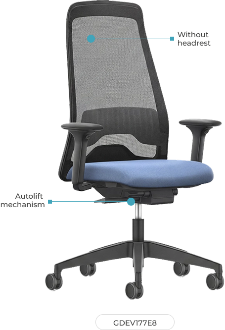 Designed to move with you—supporting long days with a high-back silhouette available in breathable mesh and a compact Autolift mechanism that self-adjusts to your weight. Optional headrest with height and angle adjustment, independent lumbar height support, and 4D armrests help you find a posture that feels natural and stays comfortable. A new high-density seat cushion softens pressure points while the synchronized mechanism with FLEXTECH option enables smooth, balanced recline for focus or flow. Configure it as a task or drafting chair and choose from a contemporary color palette to complement modern workspaces. Built for intensive use with recyclable materials and sustainable processes, it delivers the rare balance of performance, quality, and cost—so healthier sitting becomes effortless.