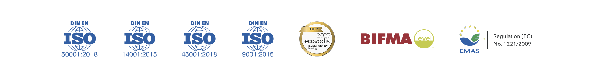 GS-symbol for tested safety, tested for contaminants. BIFMA tested.